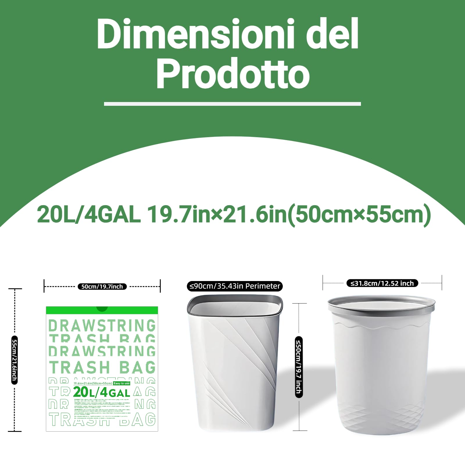 • 【Convenient with Closure】 The bin bags are equipped with a practical drawstring for easy closure and transport. They stay firmly without slipping, perfect for kitchen, bathroom, living room and outdoor use.