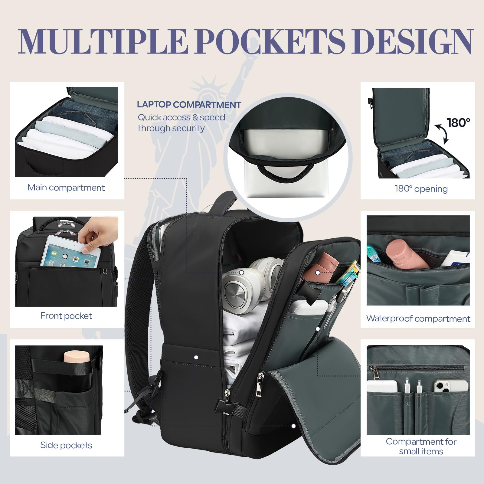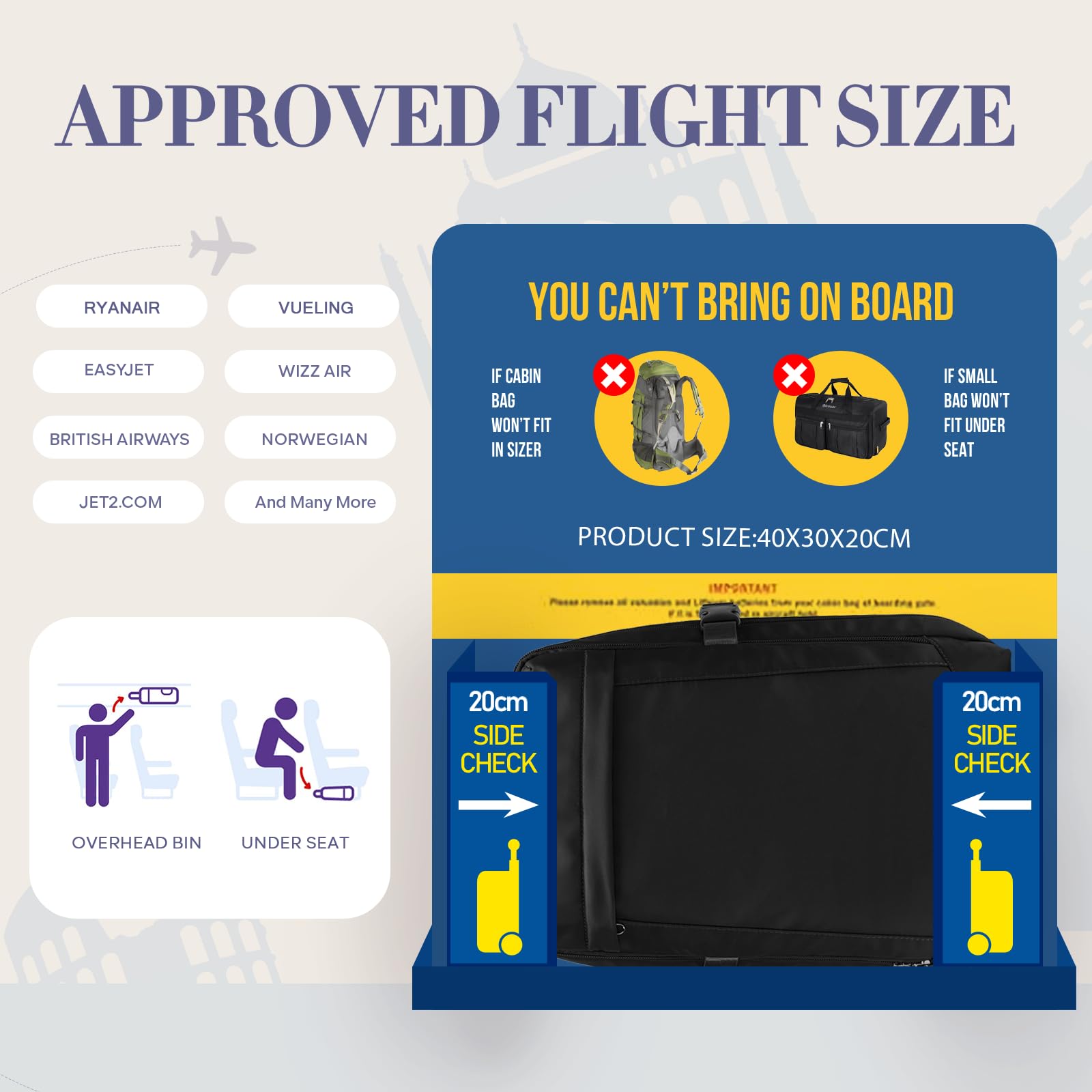 Yankony Per Ryanair Cabin Bags 40 x 30 x 20 Borsa da cabina sotto il sedile, zaino da viaggio dimensioni cabina borsa da trasporto per aerei tasche multiple zaino comfort per uomini e donne